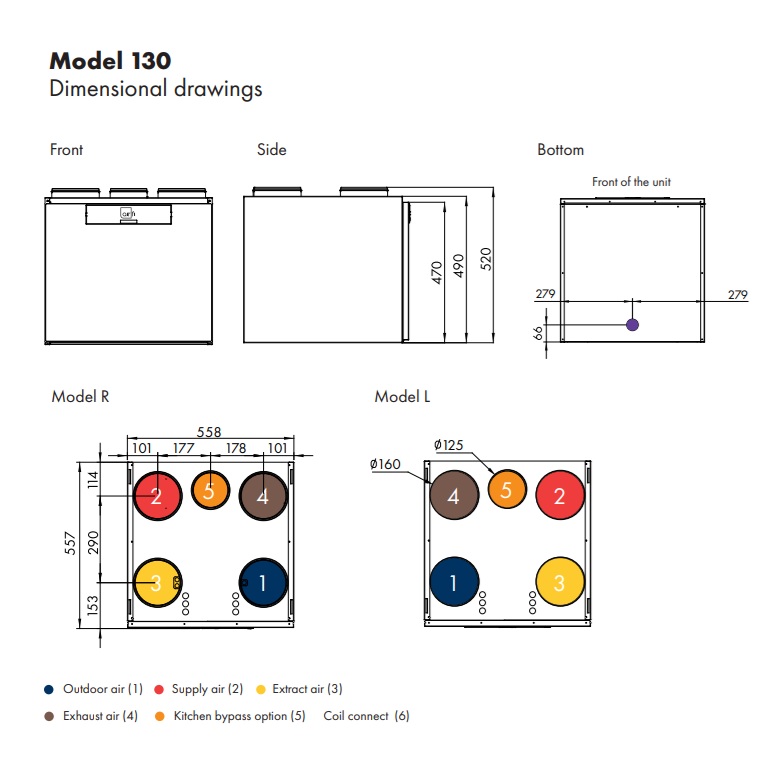 Dzięki kompaktowym wymiarom Model 130 nadaje się również do montażu w szafce, a pod nim zmieści się nawet pralka i suszarka do ubrań. Technologia AFPS pozwala rekuperatorom produkowanym przez Airfi osiągnąć roczny współczynnik wydajności klasy A+.
