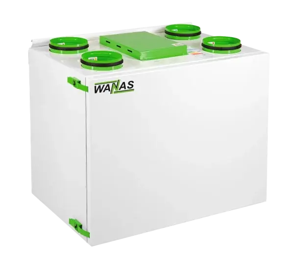 Rekuperator WANAS 600 V XF E Entalpiczny ze sterownikiem V2 jest to kompaktowa centrala wentylacyjna z pionowym układem króćców służąca do wentylacji domów jednorodzinnych.