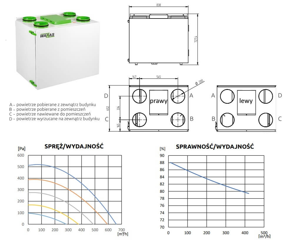 Wydajność jednostki 600m3/h