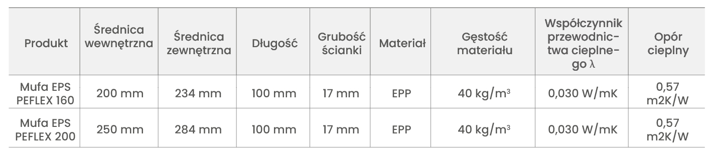 Złączka mufowa EPP PEFLEX 2.0 umożliwia szybkie i trwałe łączenie rur, kolanek oraz trójników systemu PEFLEX EPS 2.0. Dzięki elastycznej konstrukcji dopasowuje się do łączonych elementów, zapewniając szczelne połączenie na wcisk – bez potrzeby stosowania klejów czy innych środków uszczelniających. Wersja Ø200 mm przeznaczona jest do elementów o średnicy wewnętrznej Ø160 mm i zewnętrznej Ø200 mm, natomiast wariant Ø250 mm do elementów o średnicy wewnętrznej Ø200 mm i zewnętrznej Ø250 mm.